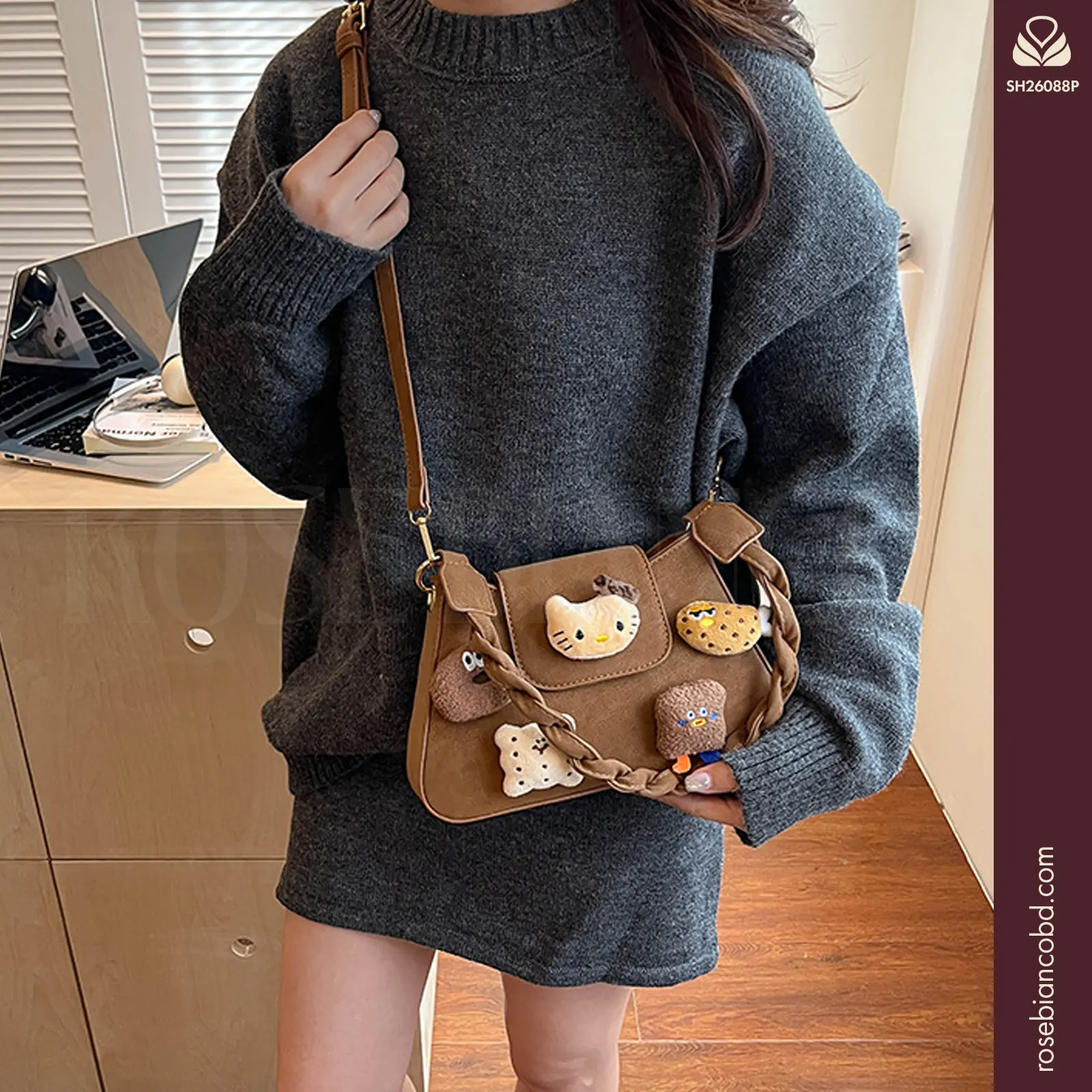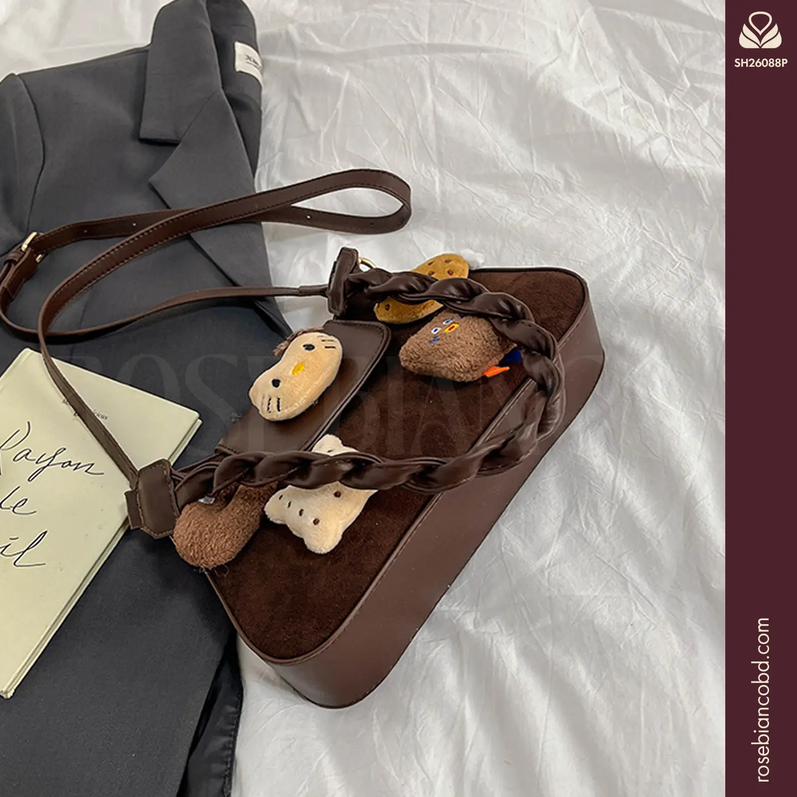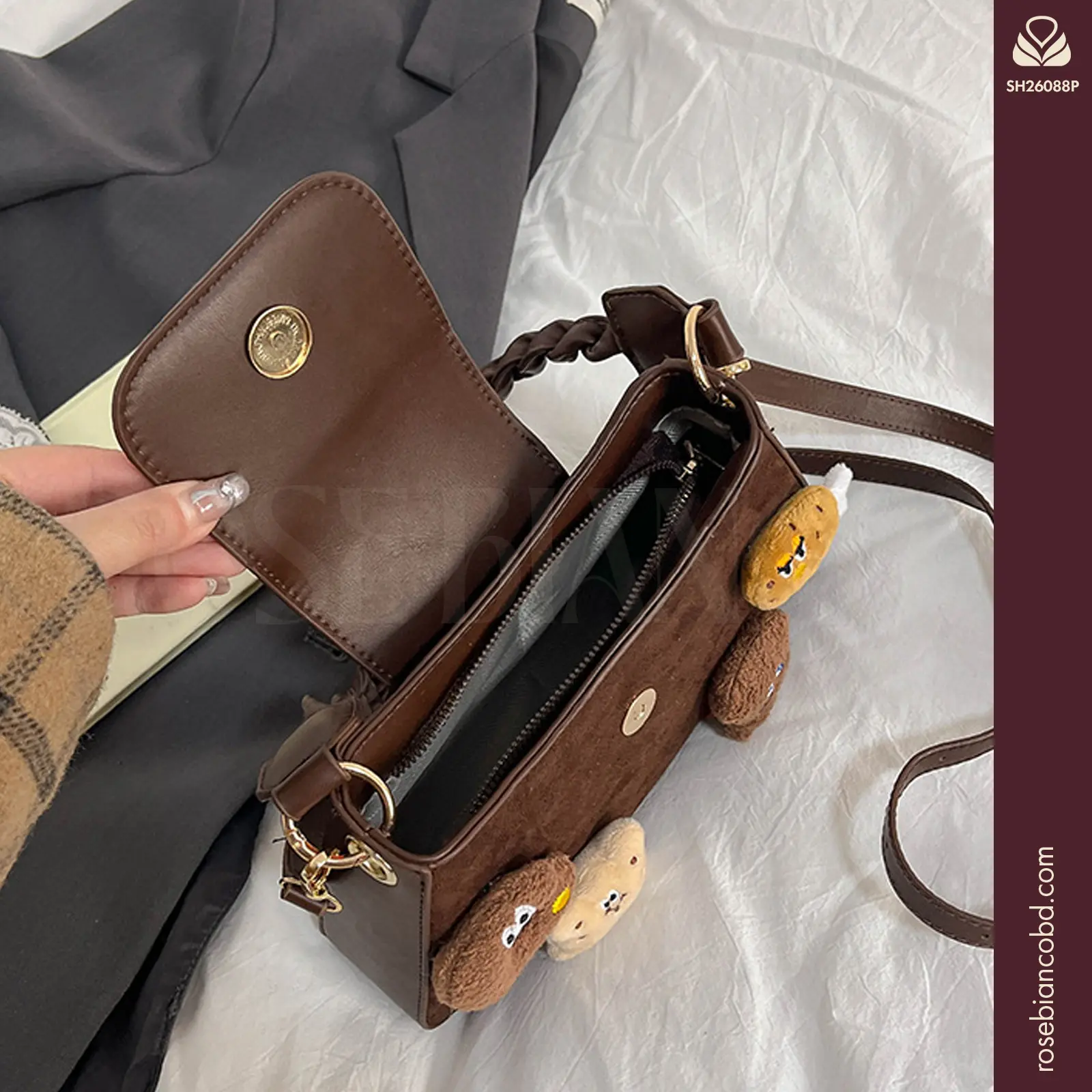This 2026 new style embraces a cute Children’s cartoon aesthetic with a high-end plush doll design. Crafted into a versatile horizontal square silhouette, this chic middle-sized bag easily transitions between an underarm bag and a single shoulder crossbody handbag, making it the perfect playful accessory to elevate your everyday outfits.
