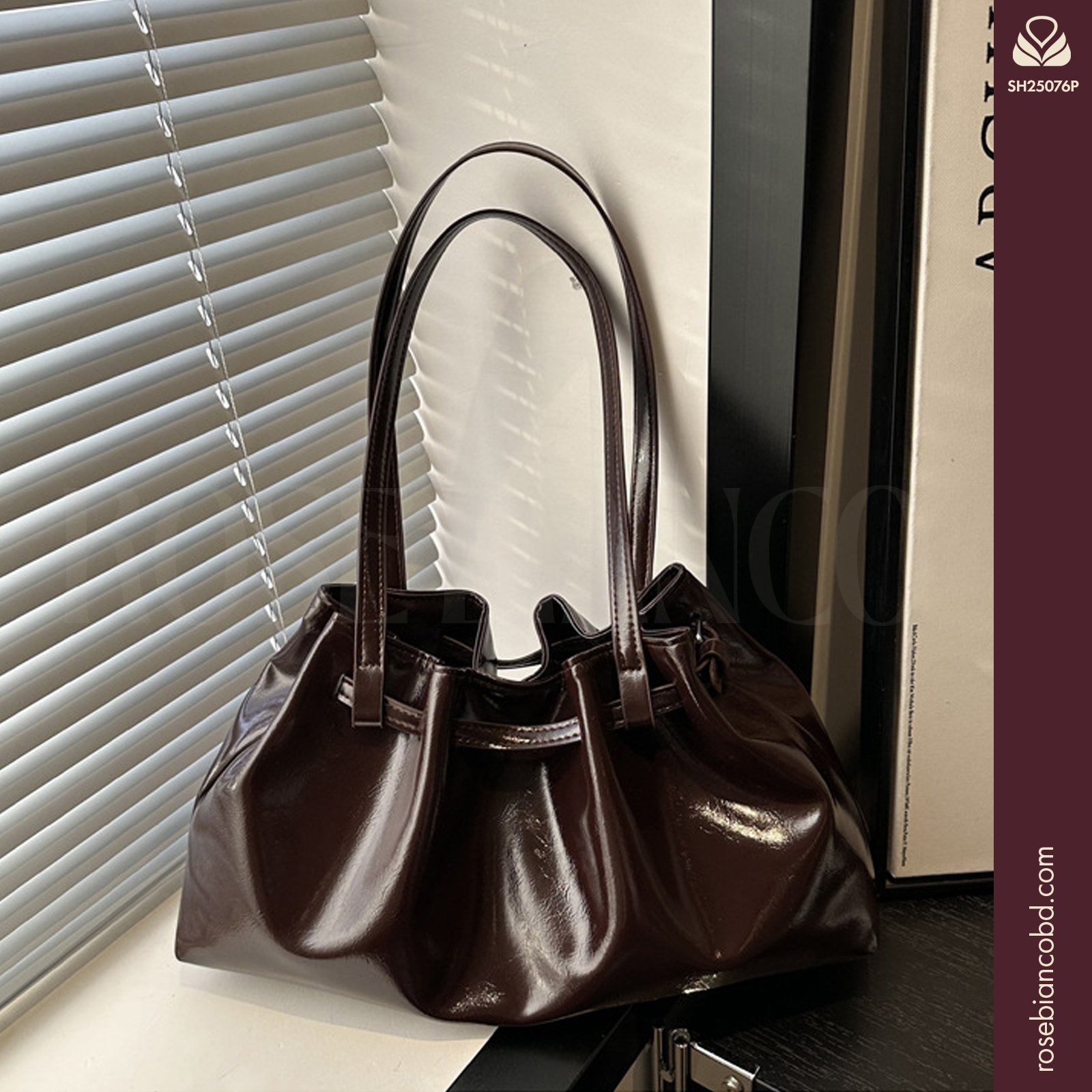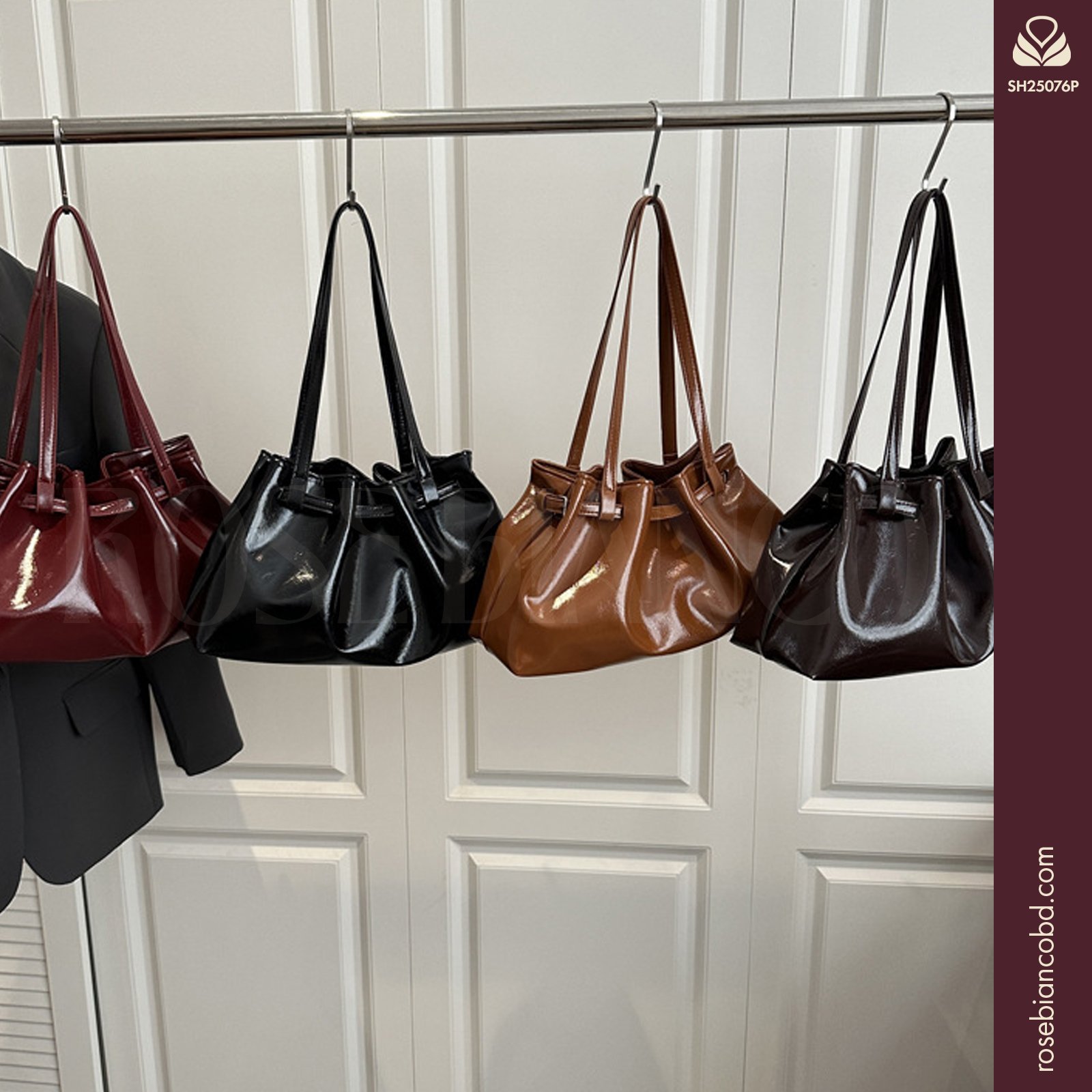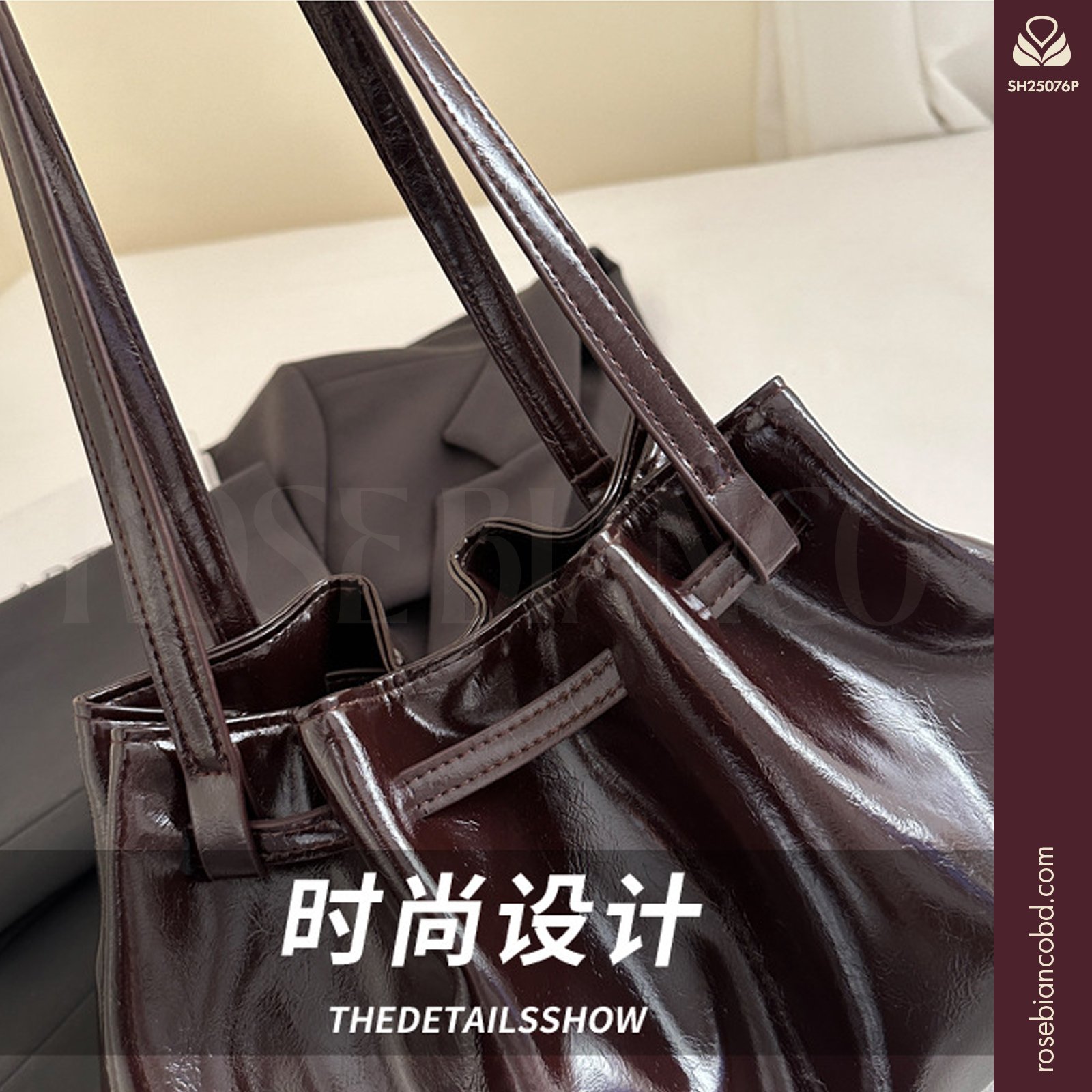 - Design: Trendy underarm silhouette accented by elegant pleated details.