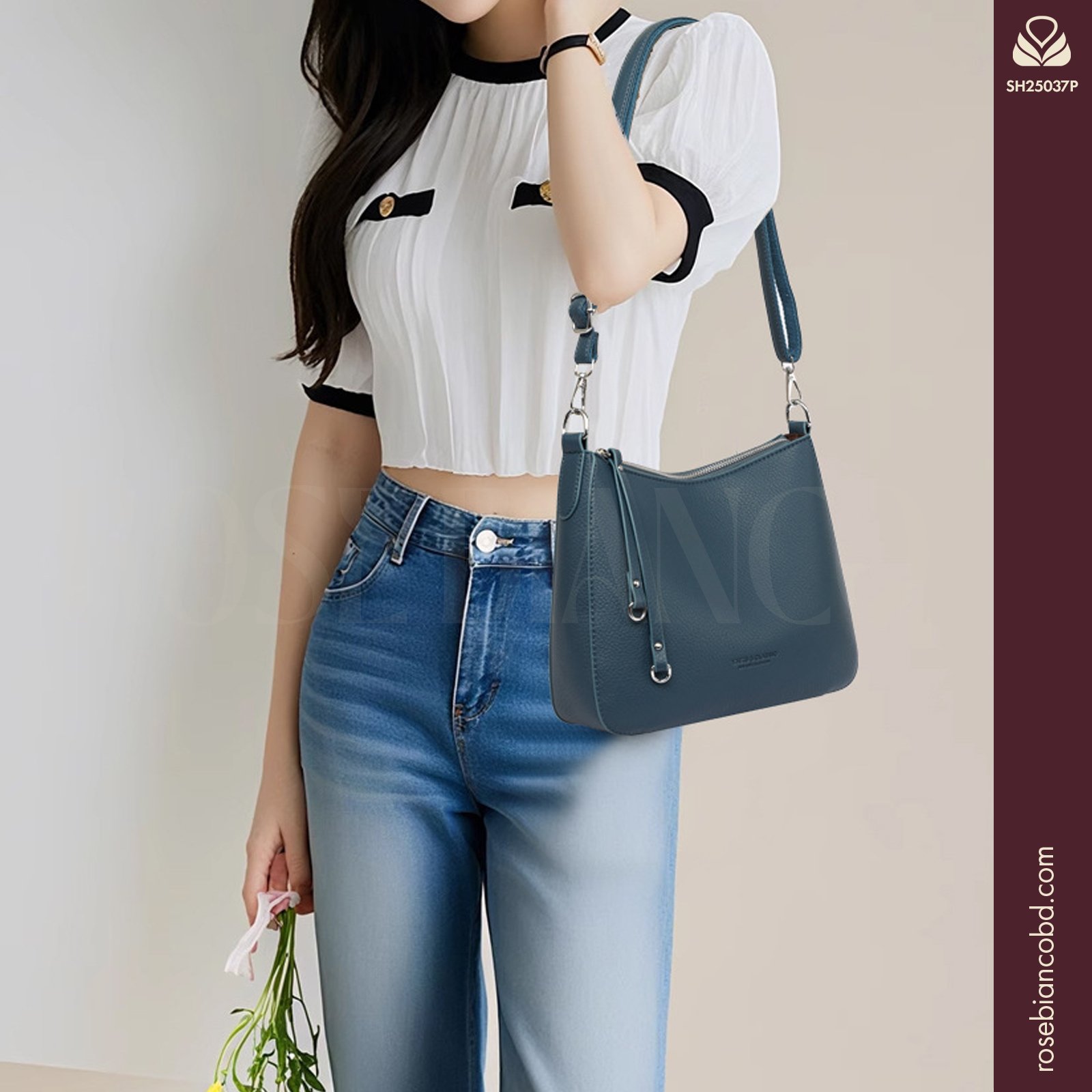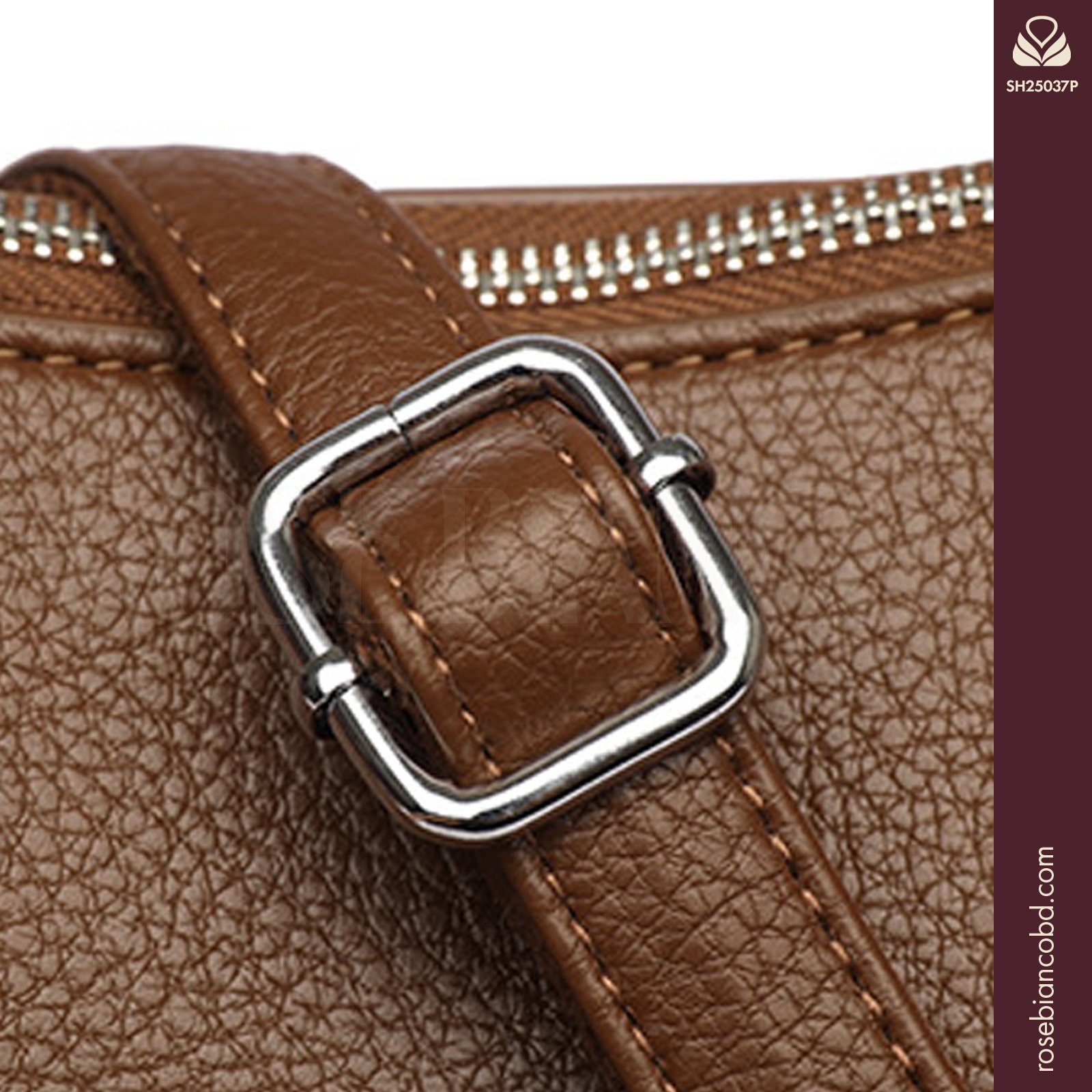 This soft PU handbag features a sleek urban minimalist design accented with subtle ornaments, offering an elegant touch for daily wear.