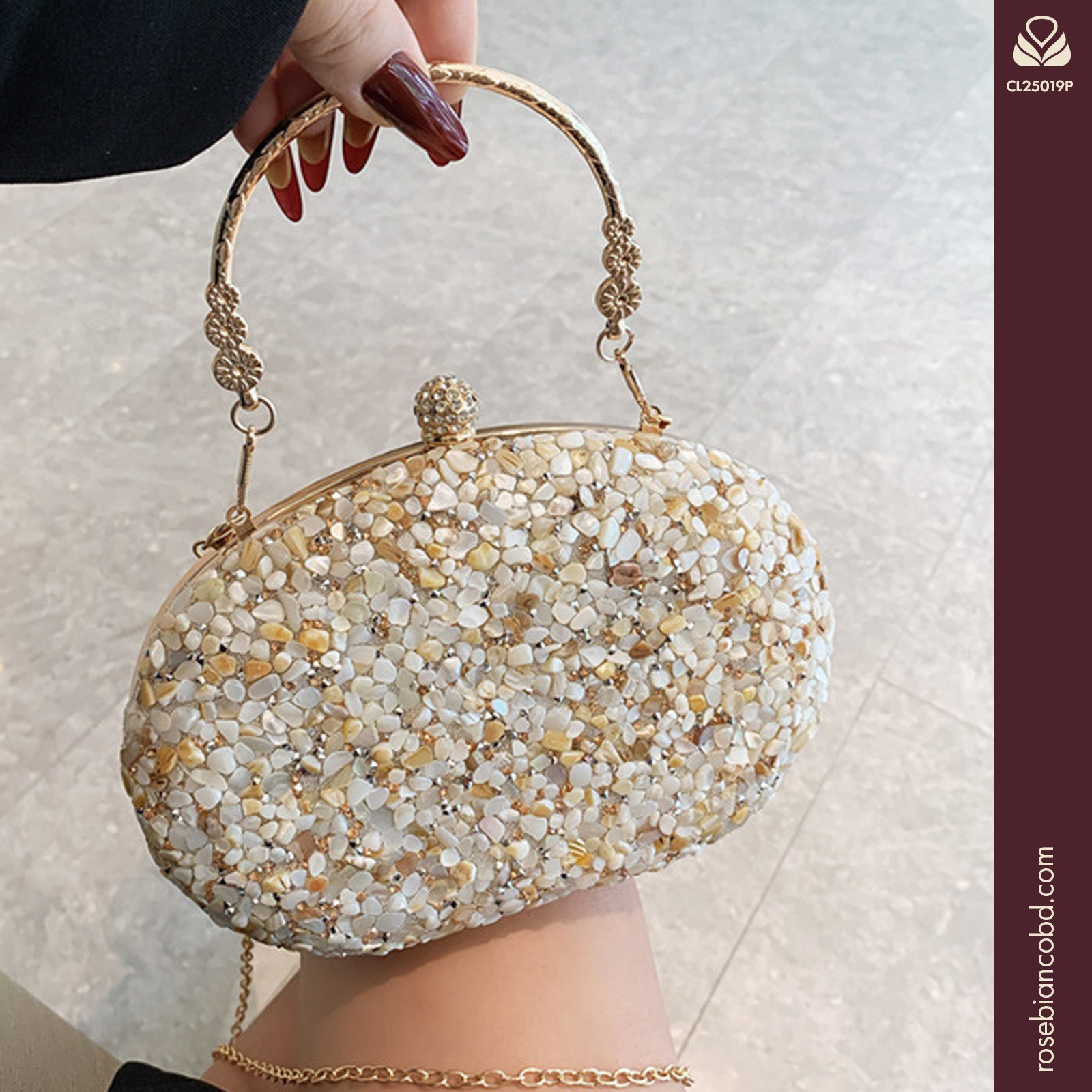 Shine bright at your next special event with the Luxury Diamond Banquet Clutch. This Spring 2025 exquisite piece features a dazzling diamond-encrusted surface and a unique oval silhouette. Perfectly designed for weddings, parties, and banquets, this light luxury evening bag is the ultimate statement accessory.