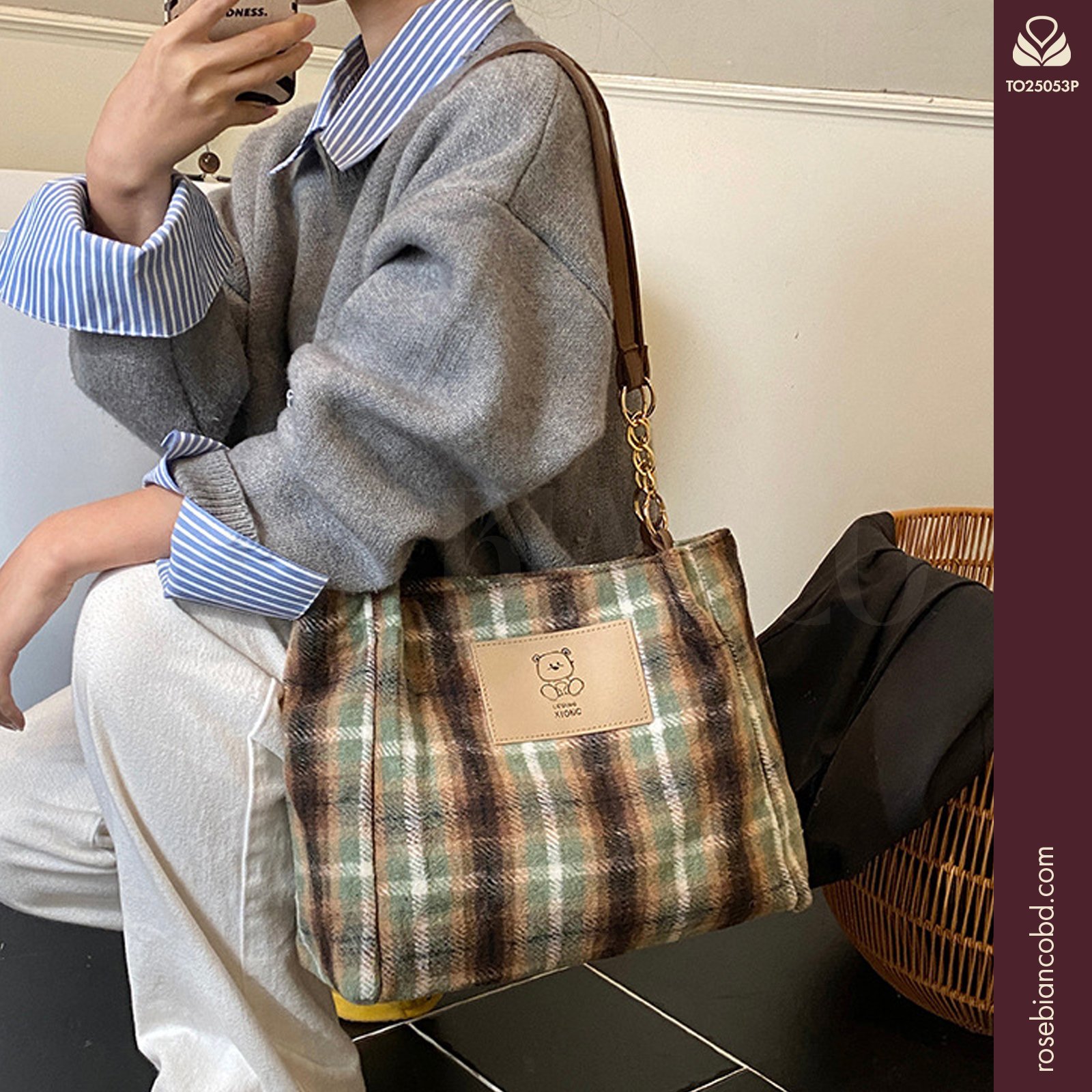 Wrap your style in cozy elegance with this Plaid Woolen Tote Bag, a quintessential accessory for the Fall/Winter 2025 season. Featuring a classic plaid pattern crafted from soft woolen material, this bag brings warmth and texture to your everyday wardrobe. Its large, horizontal square silhouette captures the “Cross-border trend,” offering a relaxed yet fashionable look perfect for casual outings or work commutes.