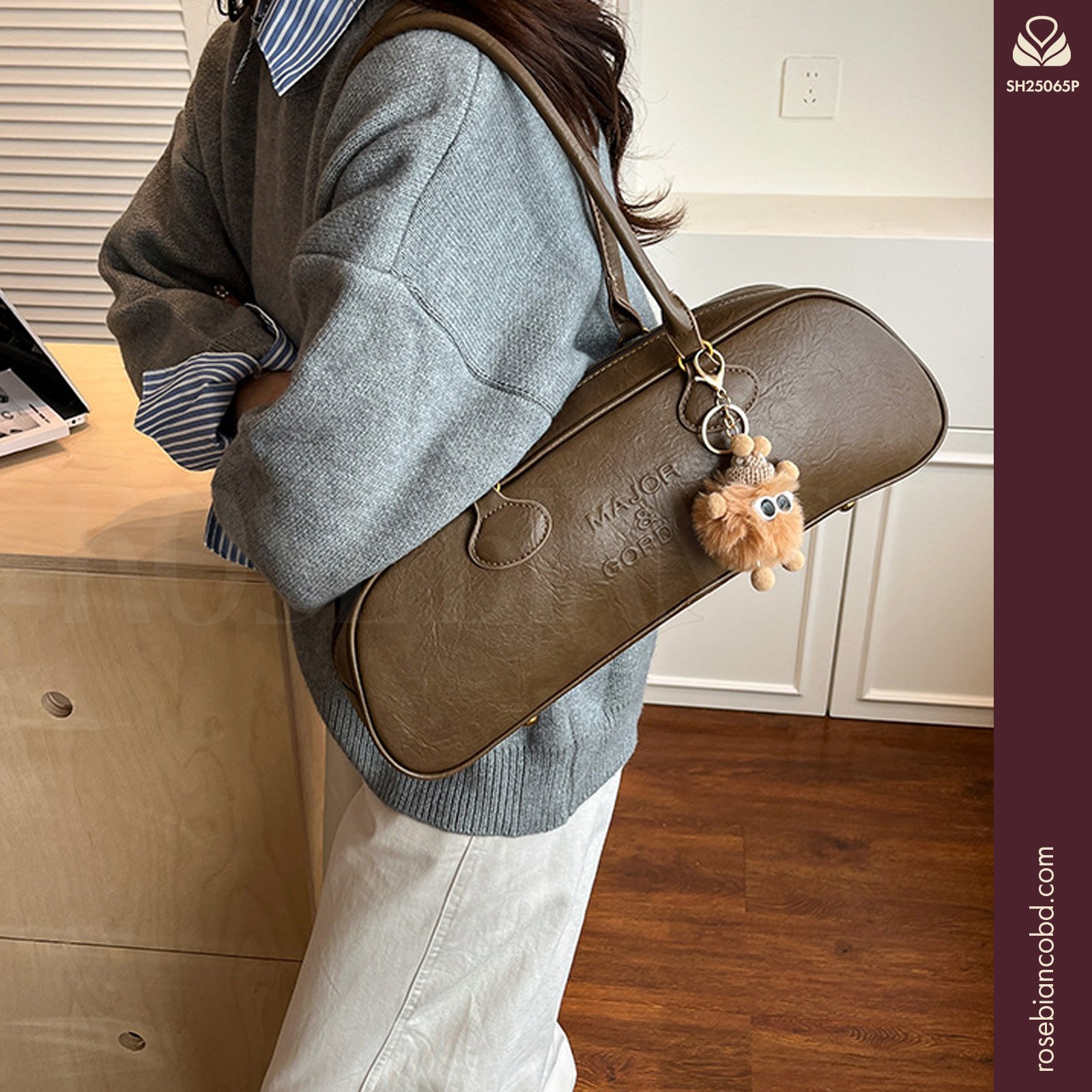 - Design: Horizontal square shape styled as a trendy underarm bag.