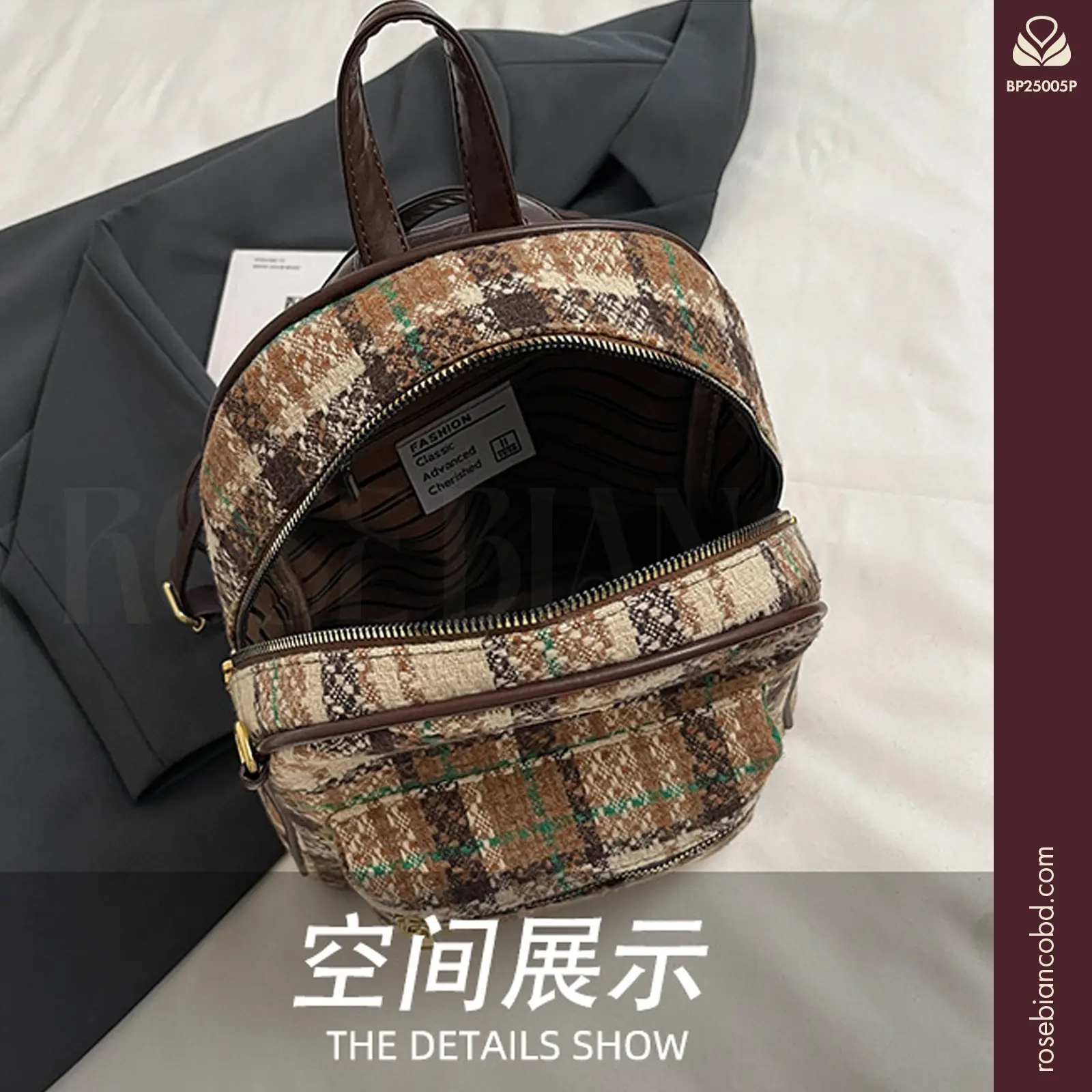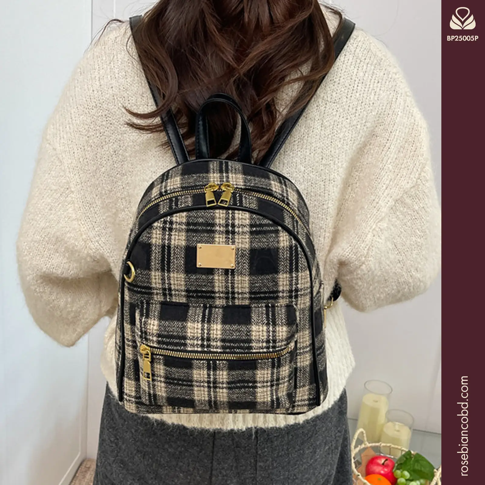 Add a touch of retro charm to your day with this soft woolen backpack, featuring a classic checkered pattern and eye-catching contrasting colors.