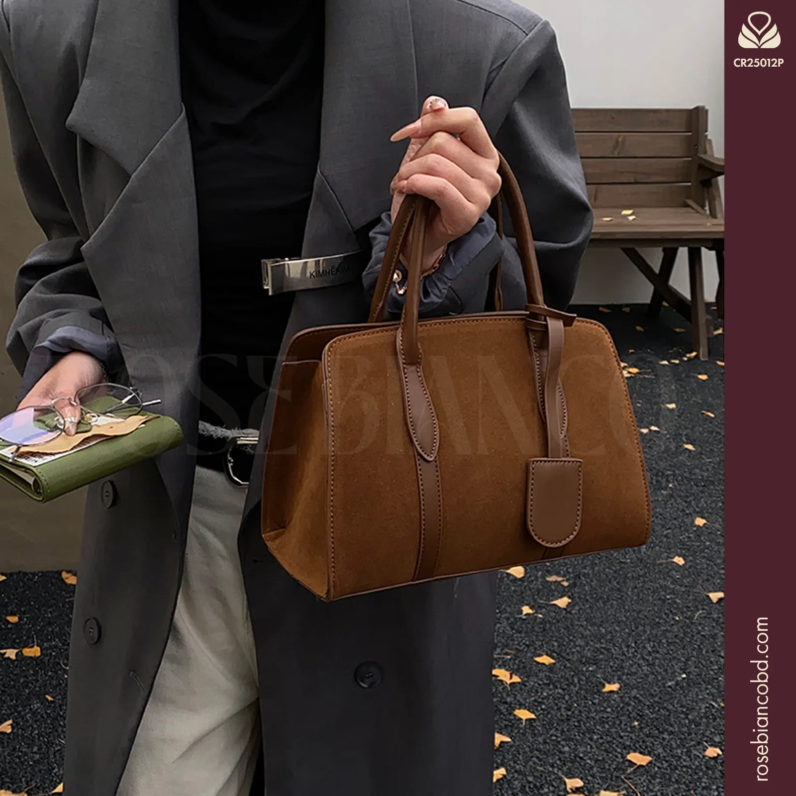 This soft PU/Suede tote features a sophisticated matte finish and classic stitching, perfect for retro-inspired daily wear.