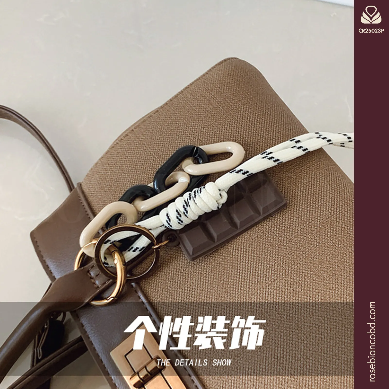 This soft PU handbag showcases stylish stitching and splicing, making it a chic and versatile accessory for any everyday outfit.
