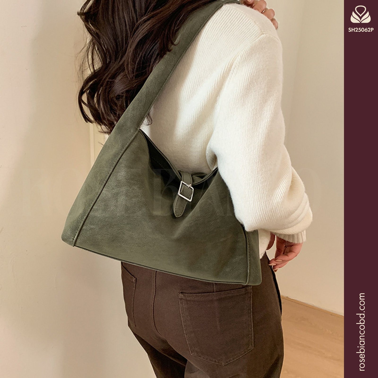 - Design: Horizontal square shape featuring trendy stitching elements.