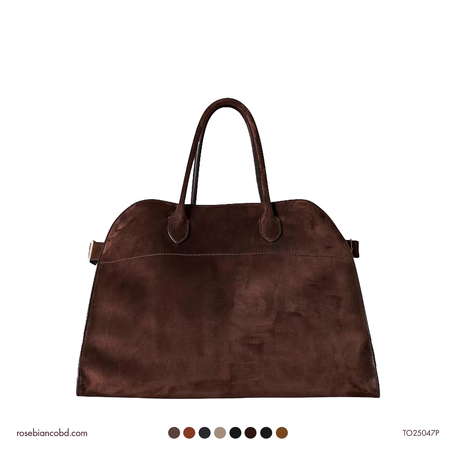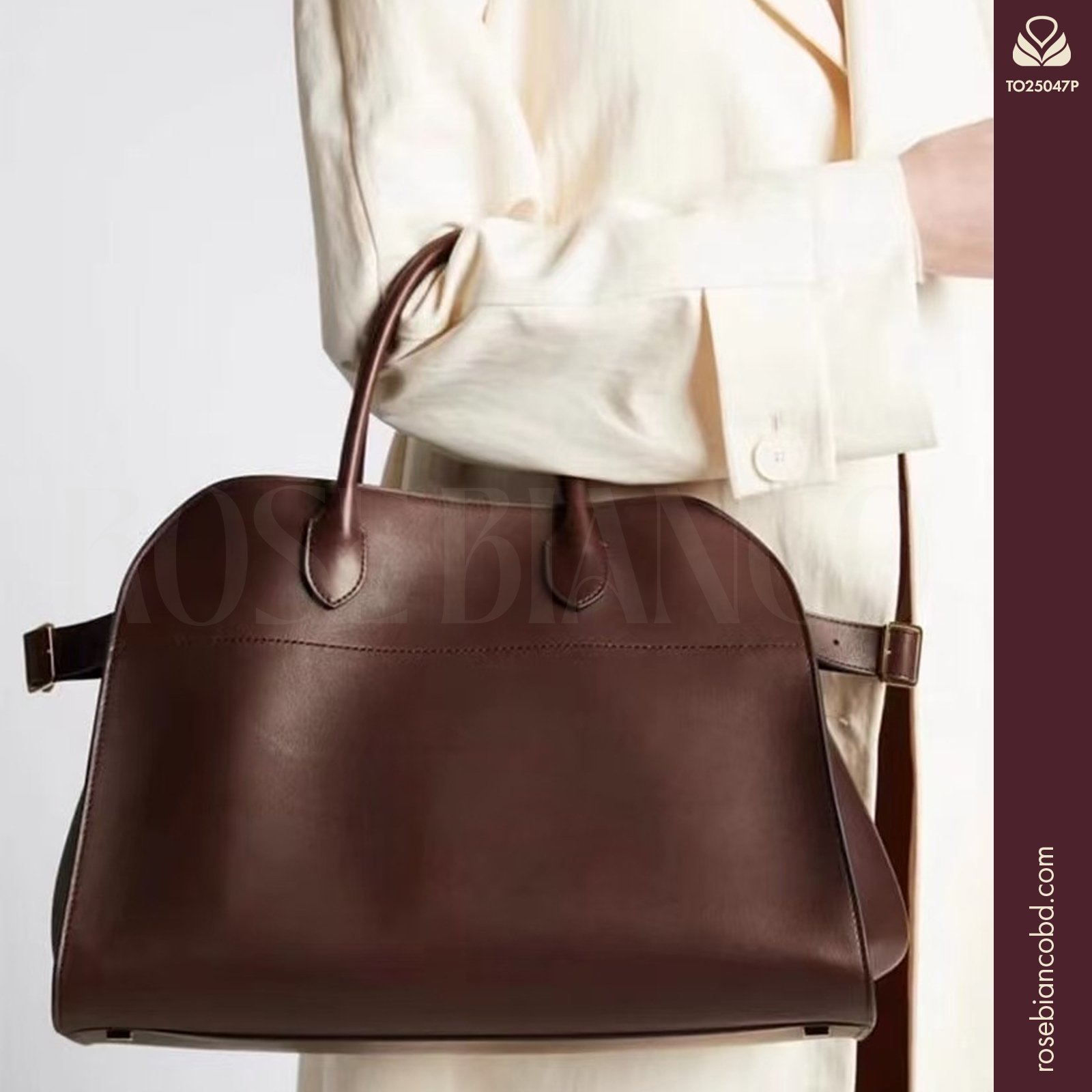 - Design: Minimalist, open-top “Dumpling” shape with side belt details.
