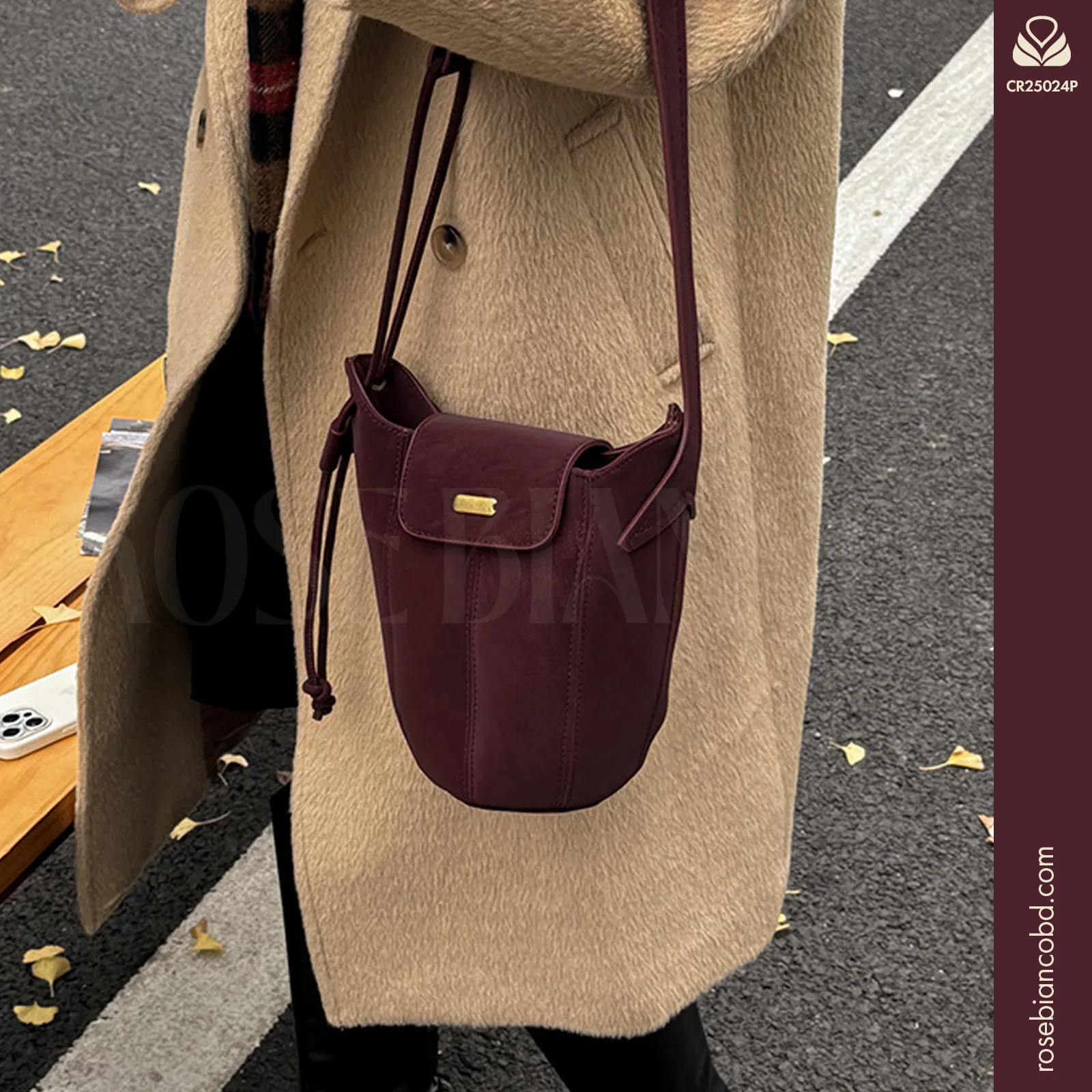 This soft PU bucket bag features clean stitching and a secure zipper and buckle closure, making it a perfectly versatile accessory for everyday wear.